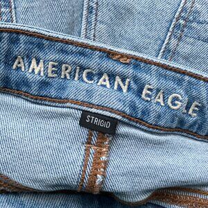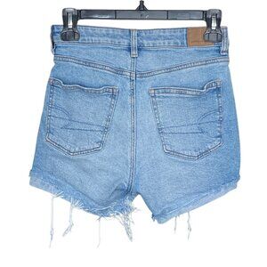 American Eagle 00 Light Wash Distressed Strigid High Rise Cut Off Mom Jean Short