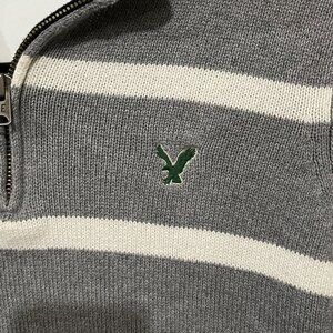 American Eagle 1/4 Zip Sweater Cotton Gray White Striped Mens Large