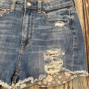 American Eagle 2 Highest Rise Shortie Denim Shorts Exposed Floral Pockets