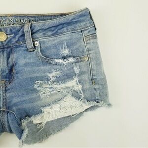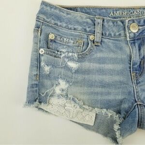 American Eagle 2 Stretch Distressed Raw Hem Lace Pocket Blue Women's Shorts