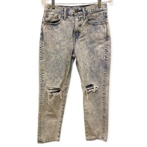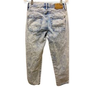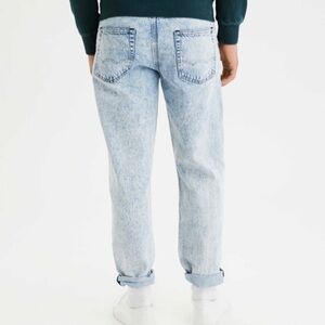 American Eagle Outfitters AEO 28x26 Skater Jeans, Mens, Distressed, Acid Wash, (Tag 28x30). Preowned. Gently worn. The tag says 28x30. The actual measurements are approx 28” waist x 26” inseam. Tapered leg. 100% Cotton. Factory applied distressing.
