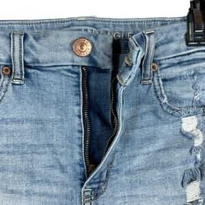 American Eagle 4 Curvy Hi-Rise Shortie Jean Shorts Distressed Stretch Frayed Hem