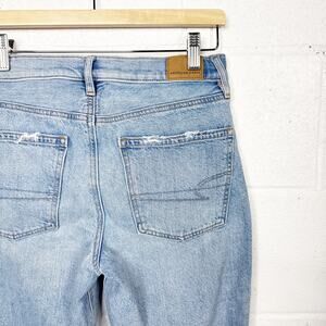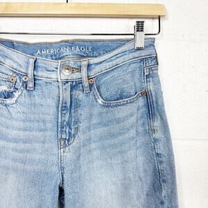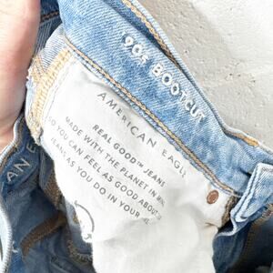American Eagle jeans, AE '90s bootcut, distressed jeans, ripped jeans, light wash denim, vintage-style jeans, relaxed fit, Y2K aesthetic, women's jeans, bootcut jeans, raw hem jeans, preppy style, casual denim