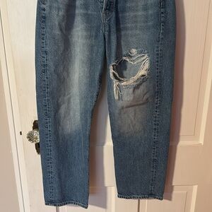 American Eagle 90's Boyfriend Women's Distressed Button Fly Denim Jeans Size 6 S; good condition, fast shipping, smoke free home