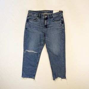 American Eagle 90s Straight Jeans Size 14R 32W High Rise Distressed Hem NWT