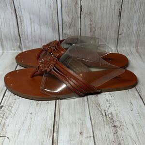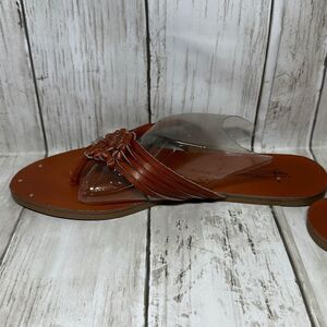 American Eagle Women’s Brown Leather Braided Flip Flops, Thongs, Slip on, Slides size 6