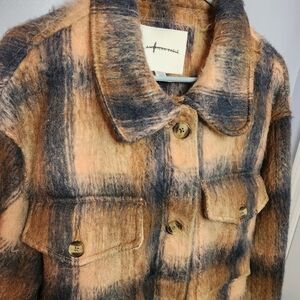 •American Eagle AE Brushed Plaid Button Front Shirt Jacket Shacket Women's XL. Brown/tan fuzzy. No tags but has not been washed or worn.