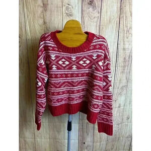 American Eagle AE Fair Isle Red White Holiday Sweater Size S