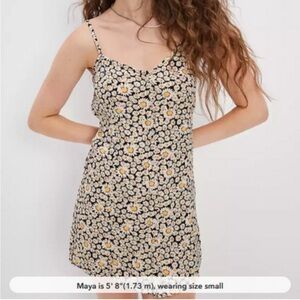 American Eagle AE Floral Button-Front V-Neck Mini Dress Sunflower