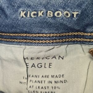 This is a pair of kick boot jeans by AE/American Eagle Outfitters. These are size 0 Regular, medium light wash.