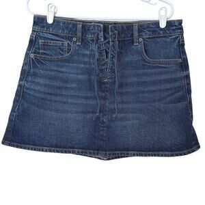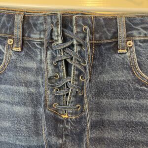 American Eagle AE Lace-Up A-Line High Rise Denim Mini Skirt Size 12 Dark Wash