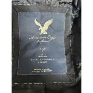 American Eagle AE Pea Coat Womens Small Navy Blue Plaid Button Jacket Wool Blend