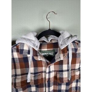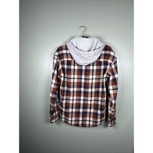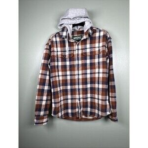 American Eagle AE Removable Hoodie Flannel Plaid Button Up Brown Blue Men's XS