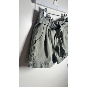 American Eagle AE Size 6 Olive Green Paper Bag Pleated Denim Stretch Tie Short
