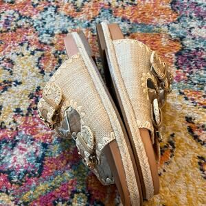 American Eagle AE Stitched Slide Sandals Natural Beige Tan Gold Buckles Size 10