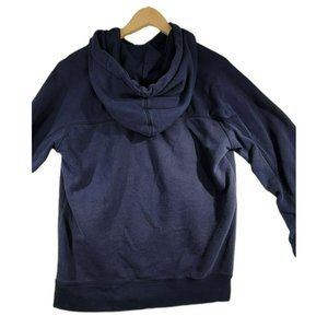 Hoodie is in very nice condition and is navy blue with gray drawstrings on hood and has two pockets on front.
