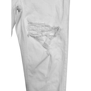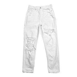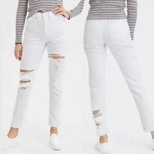American Eagle AE White Denim Mom Jeans High-Rise Ripped Distress Holes Size 6