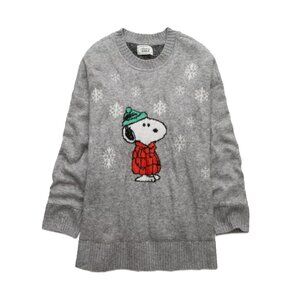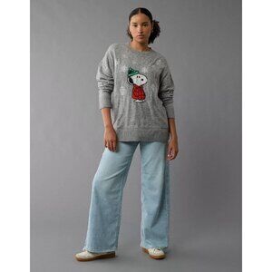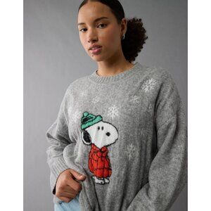 American Eagle AE Whoa So Soft Oversized Snoopy Holiday Sweater Gray sz M Womens
