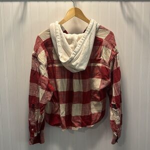 American Eagle | AE red cream buffalo check cropped flannel-sz L