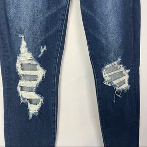 American Eagle AEO Dark Wash Distressed Knit Mid Rise Jeans 4