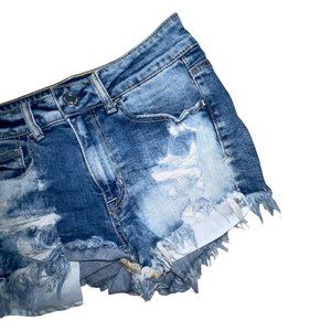 American Eagle AEO Distressed Stitched Hi-Rise Embroidered Shortie Shorts 6