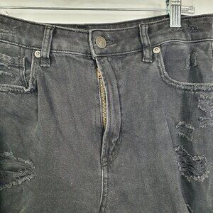 American Eagle AEO Faded Black Mom Jean Distressed High Rise Size 8 R