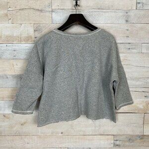American Eagle Outfitters Womens Graphic Boxy Crop Sweatshirt Gray No Merci 3/4 Sleeve Medium