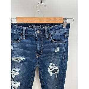 American Eagle AEO Jeans Women 0 Regular 0R Blue Denim Distressed Crop Jeggings