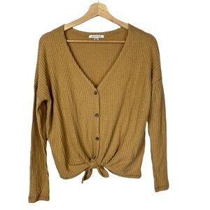 American Eagle AEO Light Brown Waffle Knit Button Down Long Sleeve XS