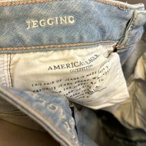 American Eagle AEO Mid Rise Jegging Light Wash Distressed Denim