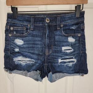 Excellent pre owned condition, American Eagle Next Level Stretch hi-rise shortie denim jean shorts 0