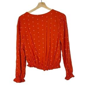 American Eagle AEO Red Floral Printed Smocked Front Long Sleeve S