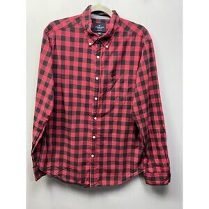 American Eagle AEO Shirt Mens large Classic Fit Black Buffalo Plaid Button Down