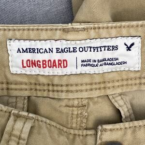 American Eagle AEO Tan Beige Khaki Longboard Flat Front Casual Shorts Mens 32