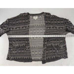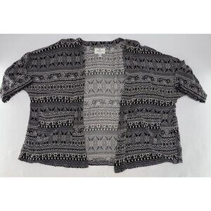 Wrap yourself in the effortless style of American Eagle's Abstract Print Flowy Kimono Cardigan, a versatile layering piece that transcends seasons. This chic cardigan, available in size XS/S, features a delicate floral pattern that exudes a bohemian vibe, complemented by a sophisticated black color that makes it a timeless addition to your wardrobe. Crafted from soft, breathable viscose, this lightweight sweater is designed for comfort and ease, boasting a relaxed fit and 3/4 kimono sleeves. Whether dressing up for a cocktail party or adding a touch of artistry to your casual day out, this cardigan's fringe accents and open neckline offer a playful yet elegant look for any occasion. Good used condition. No stains or holes found. Please feel free to ask any questions.