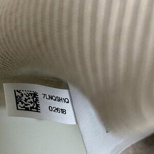 Beige oversized sweatshirt with white tie dye line across midsection
