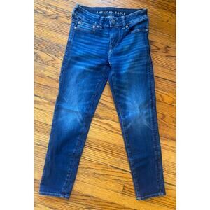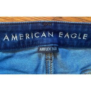 The product is a pair of American Eagle Airflex jeans for women in size 26 x 28. These jeans are from the brand American Eagle Outfitters and are in a classic blue color. The style is skinny, making them a popular choice among women looking for a sleek and flattering fit. Perfect for everyday wear or dressed up for a night out, these American Eagle Airflex jeans offer both comfort and style.
