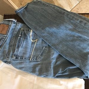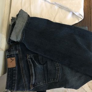 Great Condition! Middle darkest pair is Boy Crop size 4, then white size 6 Artist, lighter blue size 4 Artist.