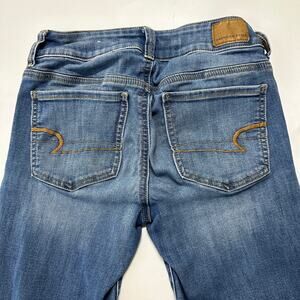 American Eagle Artist Crop Jeans Women Size 4 Blue Next Level Stretch PUCKERING