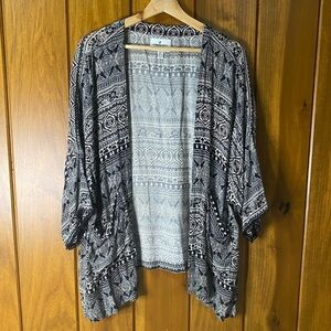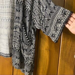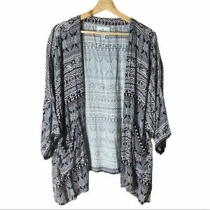 American Eagle: BOHO Tassel Flowy Aztec Pattern Black Tan Cardigan Kimono XS/S