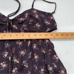 American Eagle Baby Doll Top Small Y2K Dark Blue Floral Smocked Strappy Cutout