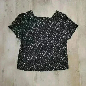 AE floral ribbed baby tee. Black with purple flowers, size medium in excellent condition.