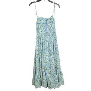 American Eagle Babydoll Dress Small Blue Green Floral Smocked Boho Cottagecore