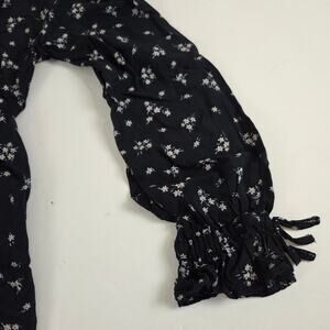 American Eagle Babydoll Navy Floral Top Small Long Sleeve Keyhole Back