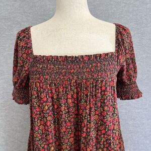 American Eagle Babydoll Smocked Dress Size M Floral Boho Prairie Swing Trapeze