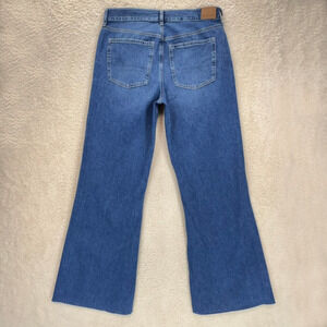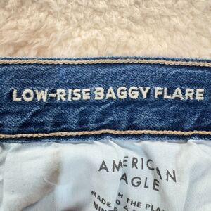 American Eagle Baggy Flare Jeans Women Size 10 Skater Boho Y2K Raw Hem Dark Wash