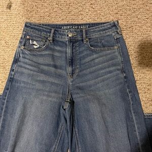 High waisted, distressed at the knees, stretch material. Never worn, just tried on!