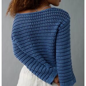 American Eagle ballet-inspired open knit sweater in women’s XL. Features a soft blue two-tone color with romantic, flowy details and breathable texture.