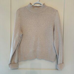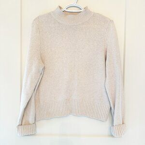 American Eagle Beige Mock Neck Sweater Large 55% Cotton 25% Polyester Ribbed Cuf