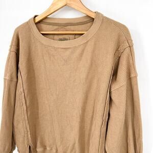 American Eagle Big Hug Lived In Oversized Tan Waffle Texture Shirt Women’s XS